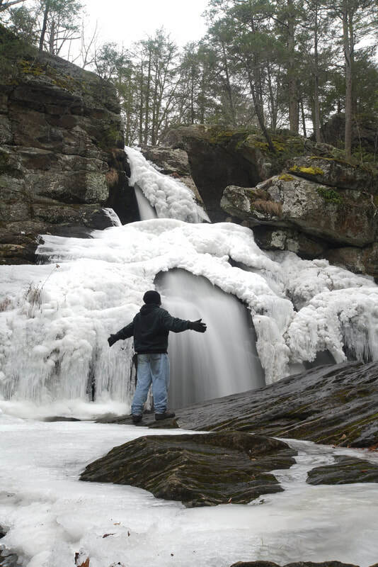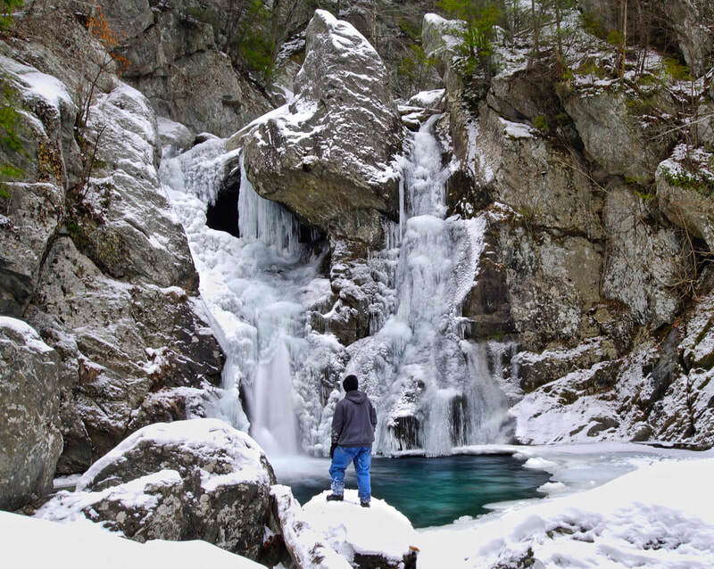 Connor at Bash Bish Falls, Winter. (Photo By Bryan Delaney)